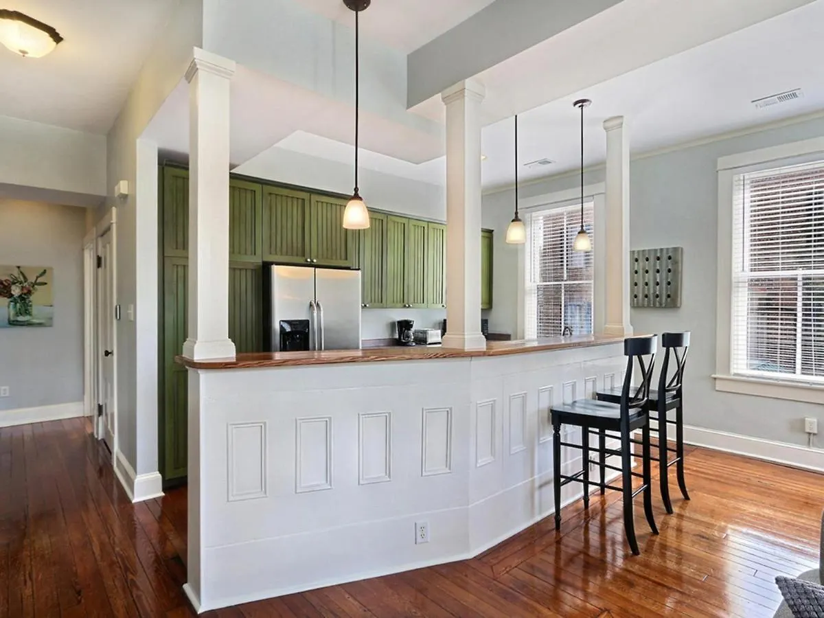 This 140 m² Lafayette Row Unit 2 apartment is situated in the centre of Savannah close to the shaded Monterey Square. The 3-bedroom apartment includes a fully equipped kitchen complete with a microwave, a dishwasher and refrigerators.